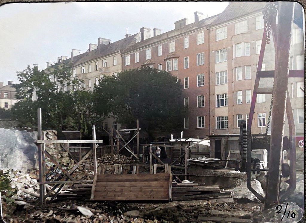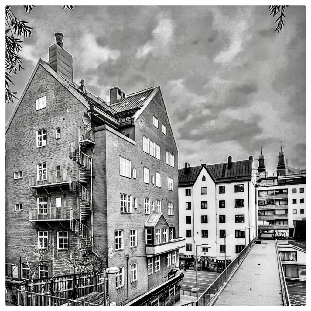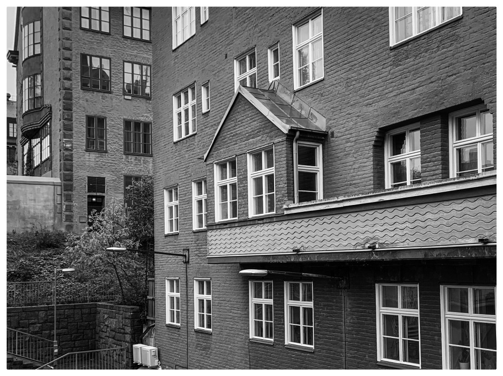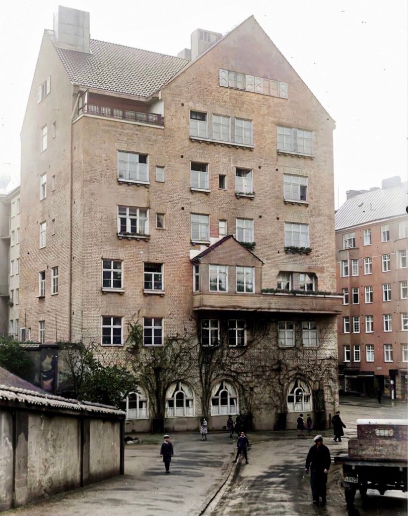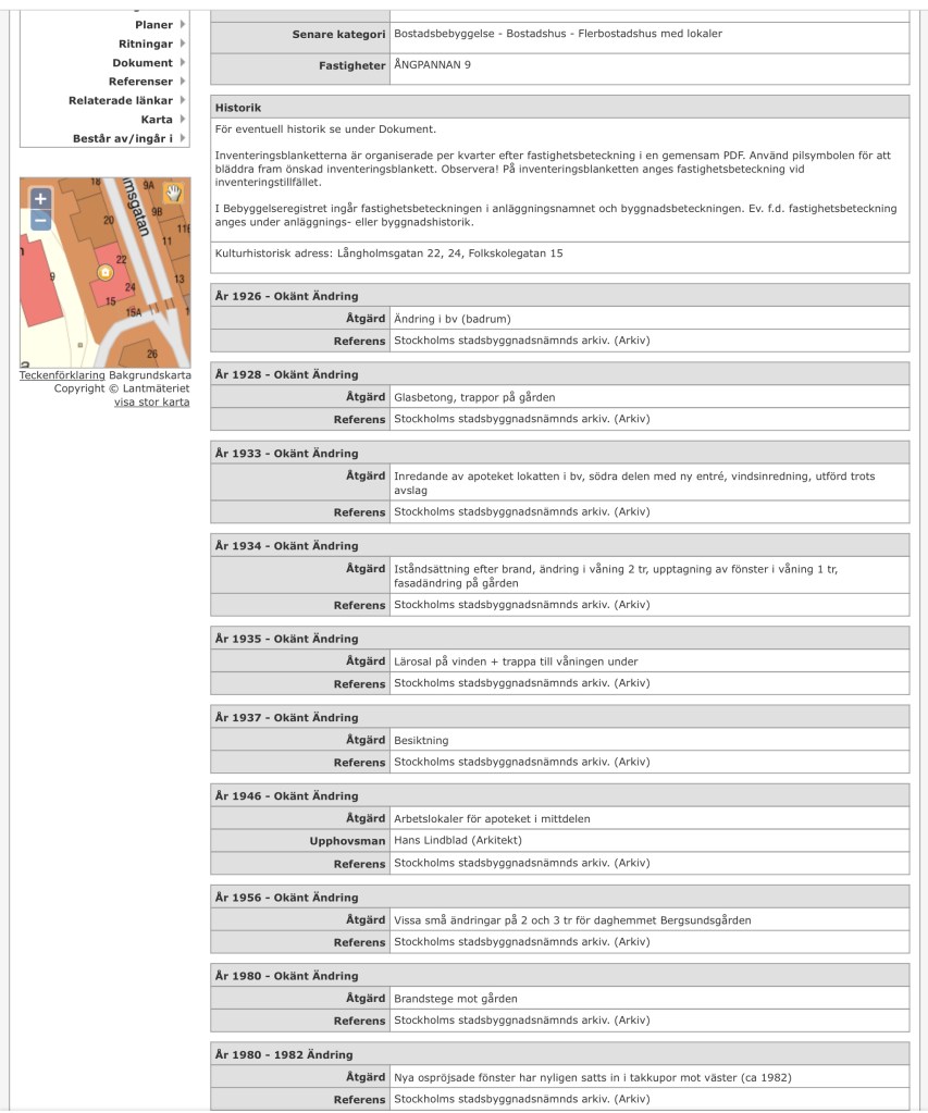 Om ni förstorar och studerar bilderna väldig noga så ser vi huvudrollsinnehavaren! Det hus som byggdes 1913-1914 och fick gatuadressen Långholmsgatan 16, nuvarande gatunummer är 22 – 24.