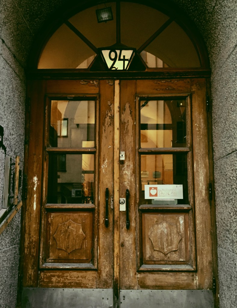 Småbutiker trängs längs gatan, en hattaffär vid sidan av en blomsterbutik med exotiska pumpor till beskådande på trottoaren, ett bageri med delikat smörgåssortiment, pajer och wienerbröd, ett urmakeri som lagar min armbandsklocka i ett nafs för fyrtio kronor. Närbutiken på hörnet och så höll jag på att gå förbi den, port nummer 24. Portkoden fungerar och den tunga höga dubbeldörren ger vika för ganska mycket av mina kroppskrafter. På första våningen finns en furuskylt med Spången inbetsat. Mellanstadieverksamhet står det över, mer officiellt.