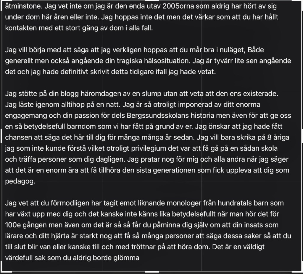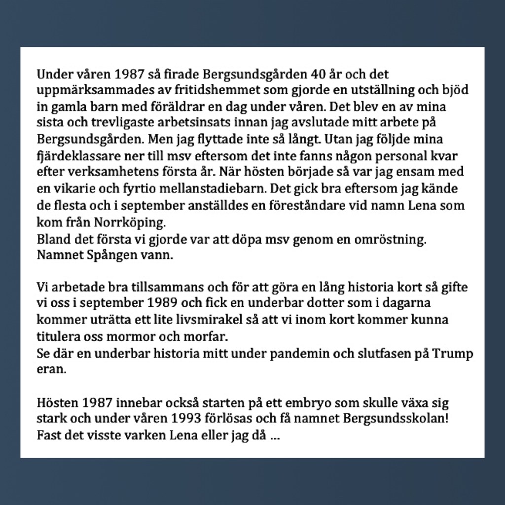 Tror också att Marie gjorde sin praktik på med andra ord när det begav sig, men jag kanske minns fel. Hur som helst är texten en fin skildring om livet på Mellanstadieverksamheten för lite mer än trettiofem år sedan och har sin självklara plats här i Portal24. Över till texten: