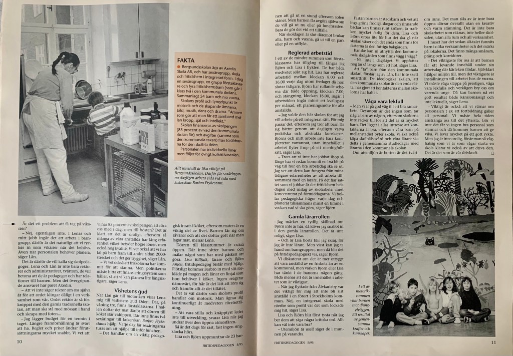 Verksamheterna för alla Stockholms skolbarn flyttades samtidigt över från socialförvaltningen till skolförvaltningen, där rektorn på Högalidsskolan blev vår närmste chef. Mer om vad som följde kommer i nästa inlägg …