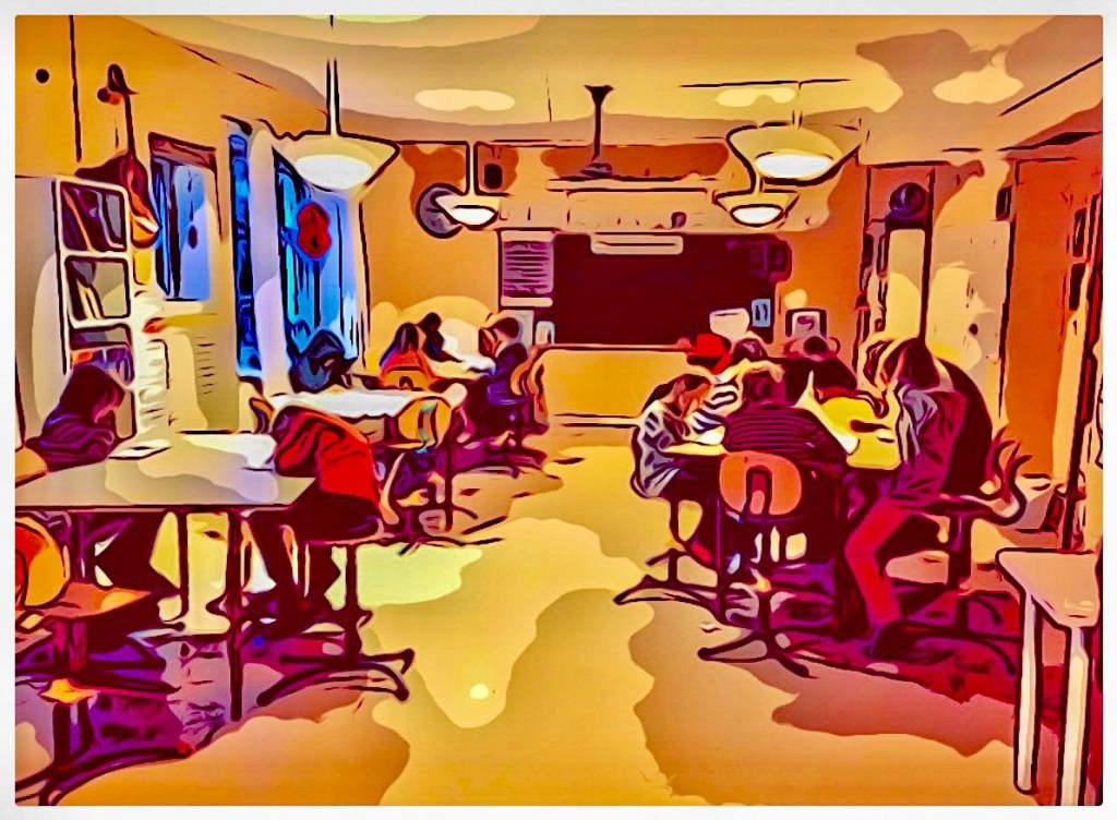 Vid biljardbordet flockas pojkarna runt de lila och grön och vita kulorna. Koncentrationen sviktar ibland. Det är den populäraste sysselsättningen. Ett större bord står högst upp på önskelistan men barnen förklarar för mig att inte finns pengar till detta.