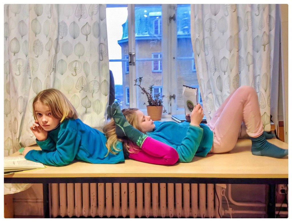 - Ni kanske också vill bli intervjuade, frågar jag och strax sitter de tysta, nedsjunkna i den mjuka soffan. De heter Nina och Jonina och går i femman, de också. De tycker mest om ämnet bild i skolan.