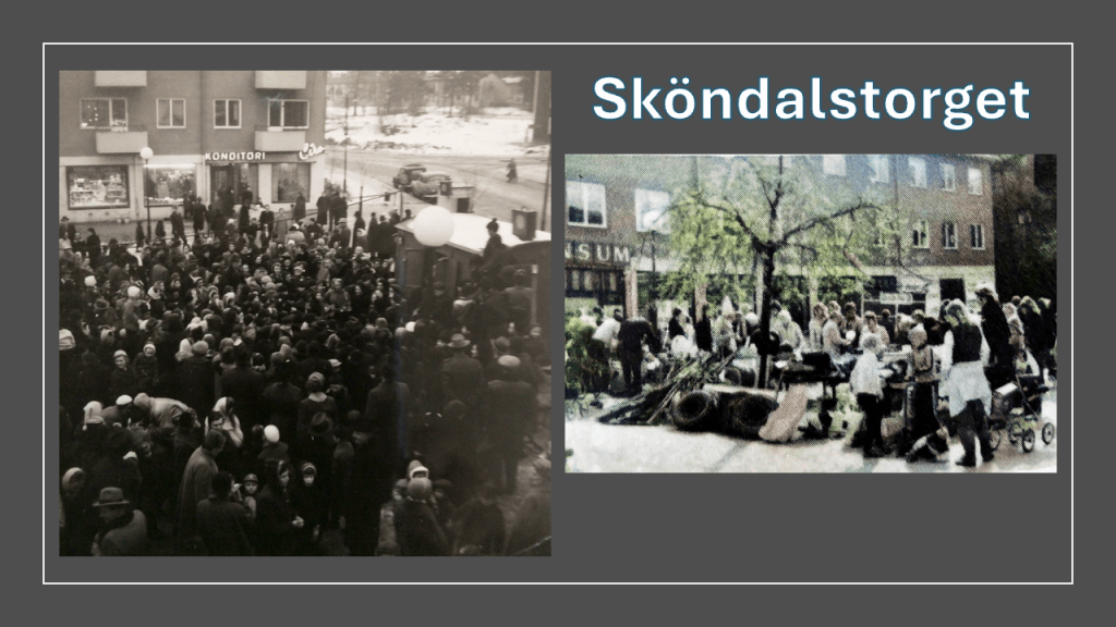 Sköndal är lika med familjen och kärlek från en sjuk mamma och en pappa som fick det allt svårare med tiden, men också en frihet helt utan ansvar. När jag blev äldre var det under lång tid lika med dåligt samvete, på grund av min livstil, efter det att jag blev påkörde den 4 maj 1966. Det blev ett par år där jag helt strunta i hur jag levde. Kallar den fasen för ”mina två förlorade år” och anser nu att det enbart var tur att jag överlevde den perioden. Flera i det gäng jag var med i fanns runt omkring Morgongården i Skönstaholm. Några gick det riktigt illa för och tyvärr finns de inte med oss längre, men det är en annan historia. Efter lite drygt två år (våren 1968) bröt jag helt med gänget och räddningen stavas Hammarby fotboll. Som jag istället valde att följa intensivt. Från en ytterlighet till en annan …