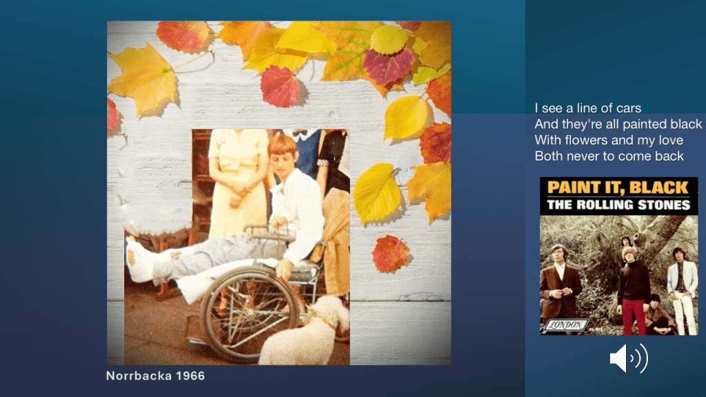 Sixten hade som sagt Parkinson under min barndom/ungdom och när vi var ute och gick på Kungsholmen fick jag anpassa mig efter hans steg. Han behövde en startsträcka tills signalerna i hans hjärna nådde fram till fötterna och därför fick han gunga igång sig. Minns också att jag sa till honom att han skulle göra bra ifrån sig med ett par Maracas i nävarna till låten Not Fade Away, med Stones, med tanke på hur mycket han skakade. Det brukade vi skratta åt tillsammans. Har inget minne av att jag någonsin skämde för honom när vi var ute och gick utan hans sjukdom var ett naturligt inslag under min uppväxt.