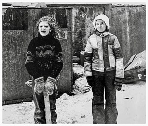 Jonina skriver också. Hon har formulerat ett upprop som ska cirkulera i skolan. Hon läser upp det för mig. Hon vill att alla elever och lärare skall ge tjugo kronor var till barnhemsbarnen i Rumänien. Nina och Jonina förvånas över att det finns barn som tvekar att skriva på listor om att alla barn har rätt till kärlek, ömhet och omvårdnad. I deras klass finns en elev som tycker att de får skylla sig själva. Flickorna har också frågat sina mammor om de inte kan adoptera ett barn från ett rumänskt barnhem. Det kunde inte föräldrarna.