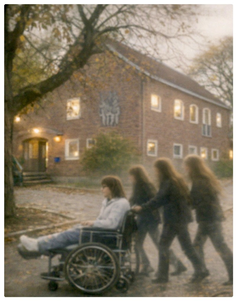 Beskrivningen av olyckan och sjukhusvistelsen är effektiv just för att den är återhållen. Du försöker inte göra den dramatisk – och därför blir den det.